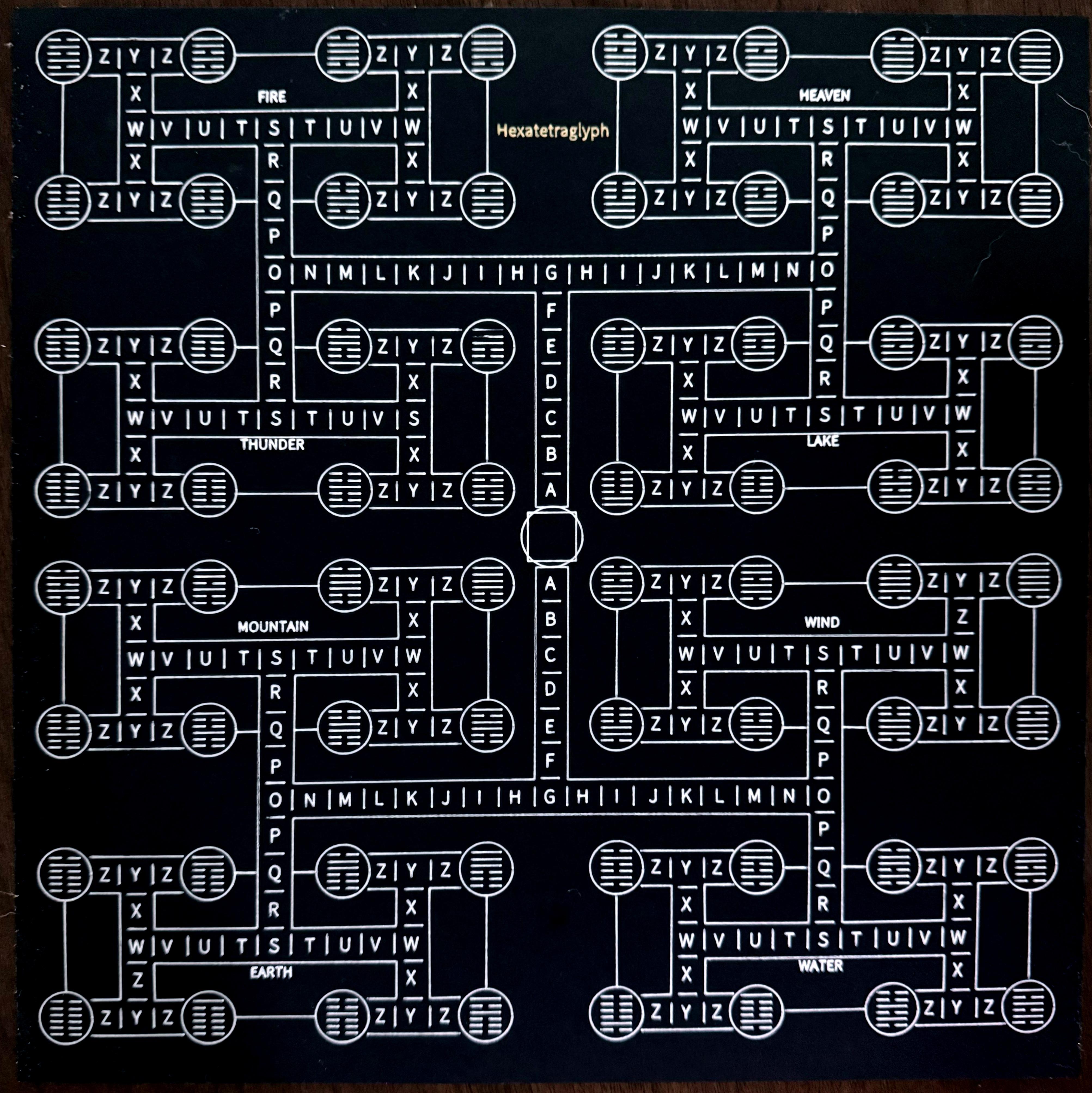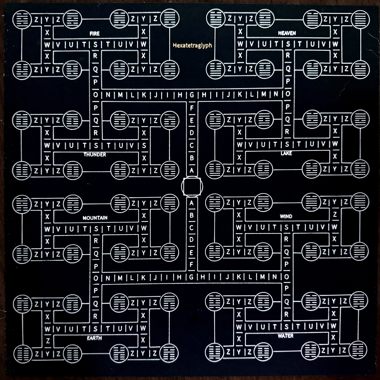 The name “Hexatetraglyph” refers to the six pathways (hexa) and the four directions (tetra) seekers must traverse to reach one of the 64 possible destinations on the oracle map. Each endpoint corresponds to a hexagram from the ancient Chinese oracle, the I Ching (glyph)