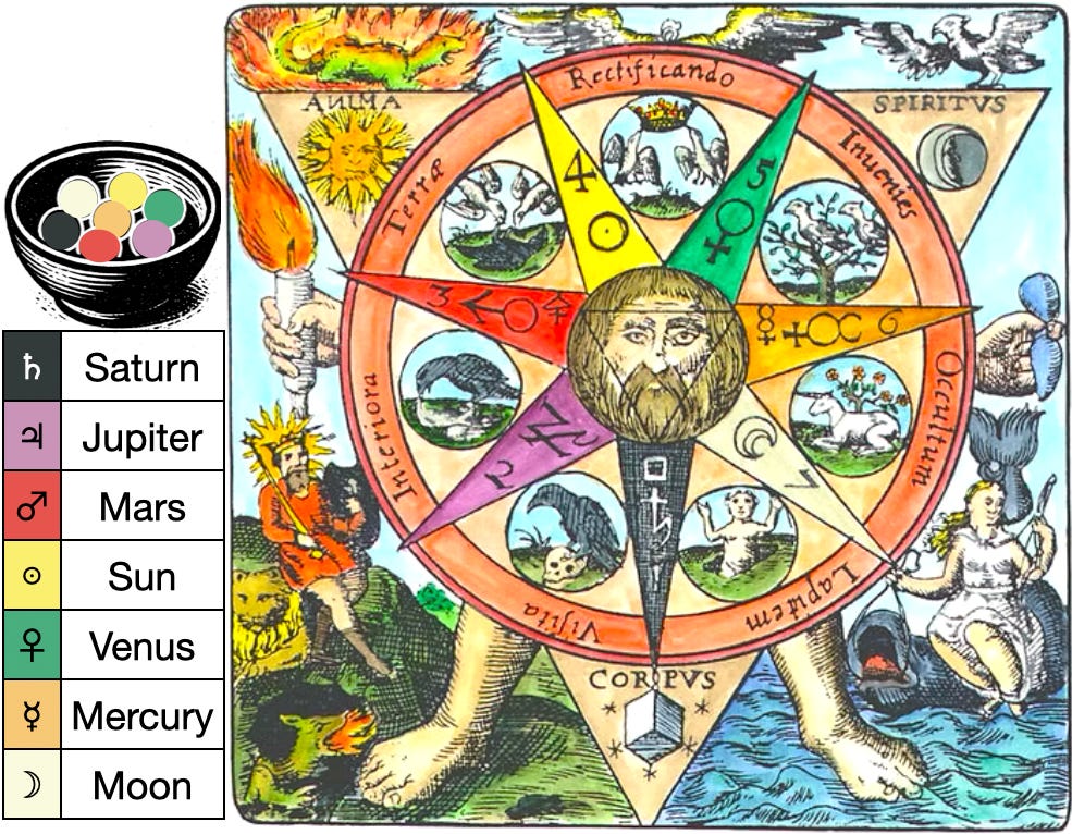 Note: Planetary tokens represent the seven classical planets of astrology. Each day, you will seek inspiration from one of these planets.