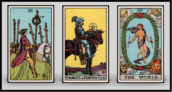 Card 1: Six of Wands - I need to focus on visualizing real success and victory.