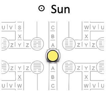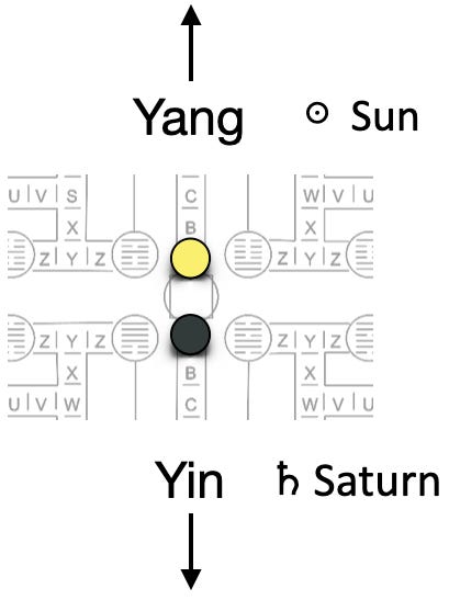 Now that you have classified the two planetary tokens, place the yang token on the upper A position and the yin token on the lower A position.