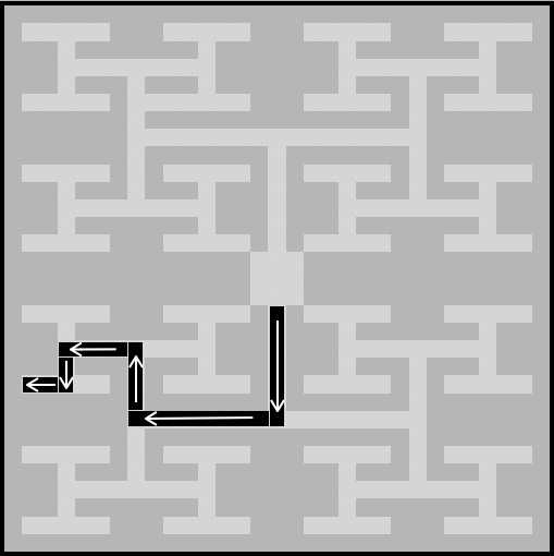 Note: Take a moment to study the Hexatetraglyph. You’ll notice the board can be divided into four equal quadrants. Once you enter one of these quadrants (which you just did), only a quarter of the potential endpoints are still available to you. At the start, there were 64 possible endpoints; now, only 16 remain open.
